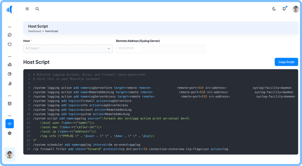 Automate your MikroTik device management with built-in backup and monitoring scripts. RapidLogX enables seamless configuration syncing, scheduled backups, and instant log integration from your MikroTik hosts. Eliminate manual errors, ensure data consistency, and keep your network running smoothly with automated script execution and secure storage.